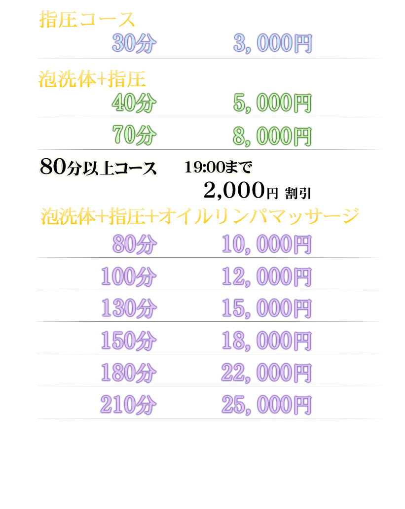 ※コーススタート後、キャンセルやチェンジ、早上がりなどに関しては一切返金できません。